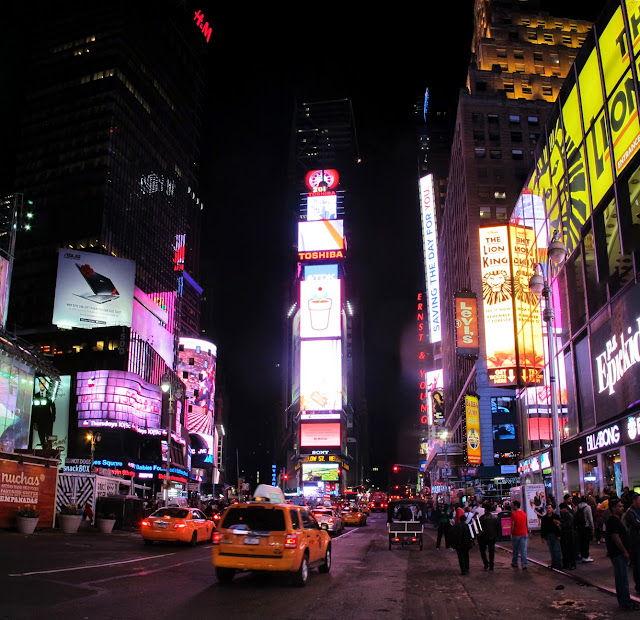 Yksi reissumme hienoimmista hetkistä on ollut vierailu "Top of the Rockissa" eli Rockefeller Centerin huipulla. Rockefeller Centerin huipulta näki kaupungin laajemmin kuin Empire State Buildingistä ja sieltä oli mukava seurata Empire State Buildingin valojen syttymistä. Rockefeller Center on rakennettu vuosina 1931-40 ja kuuluisat kuvat rakennustyömiehistä lounastamassa pilvenpiirtäjän rakennustelineillä on kuvattu juuri siellä. Itsestä ei kyllä olisi moiseen työhön ollut - korkeanpaikankammoisena polvet tutisee jo pelkästään kaiteen takaa alas katsoessa!